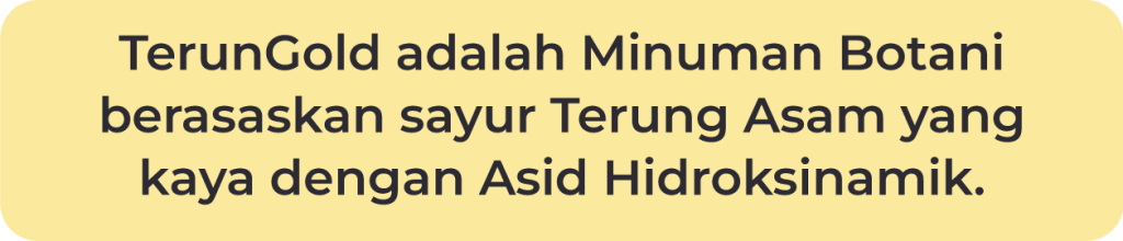 TerunGold adalah minuman botani berasaskan sayur Terung Asam yang terdapat di Sarawak. Ia nya selamat, telah melalui pelbagai ujian oleh MARDI dan bermanfaat untuk pengguna.