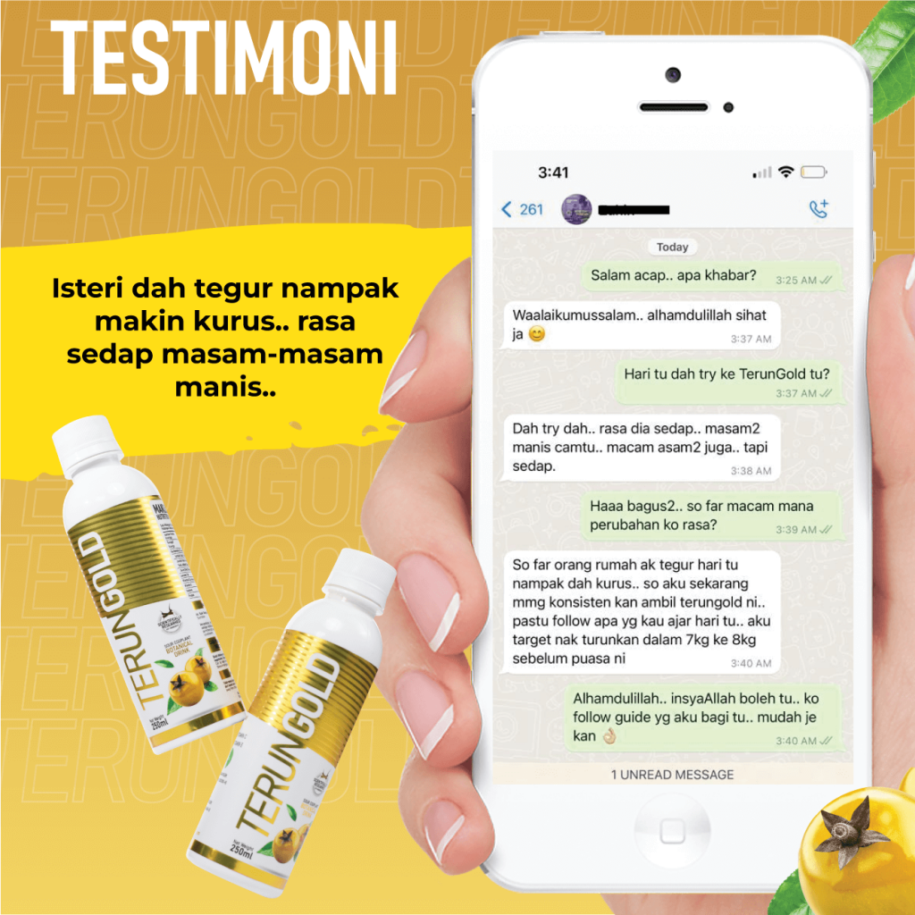 Apa kata cuba dahulu 1 botol TerunGold.. Jika tiada apa-apa perubahan langsung, kami pulangkan wang anda.